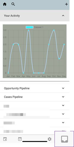 To connect to or access your email, tap the Inbox icon in the bottom-right corner of the screen.